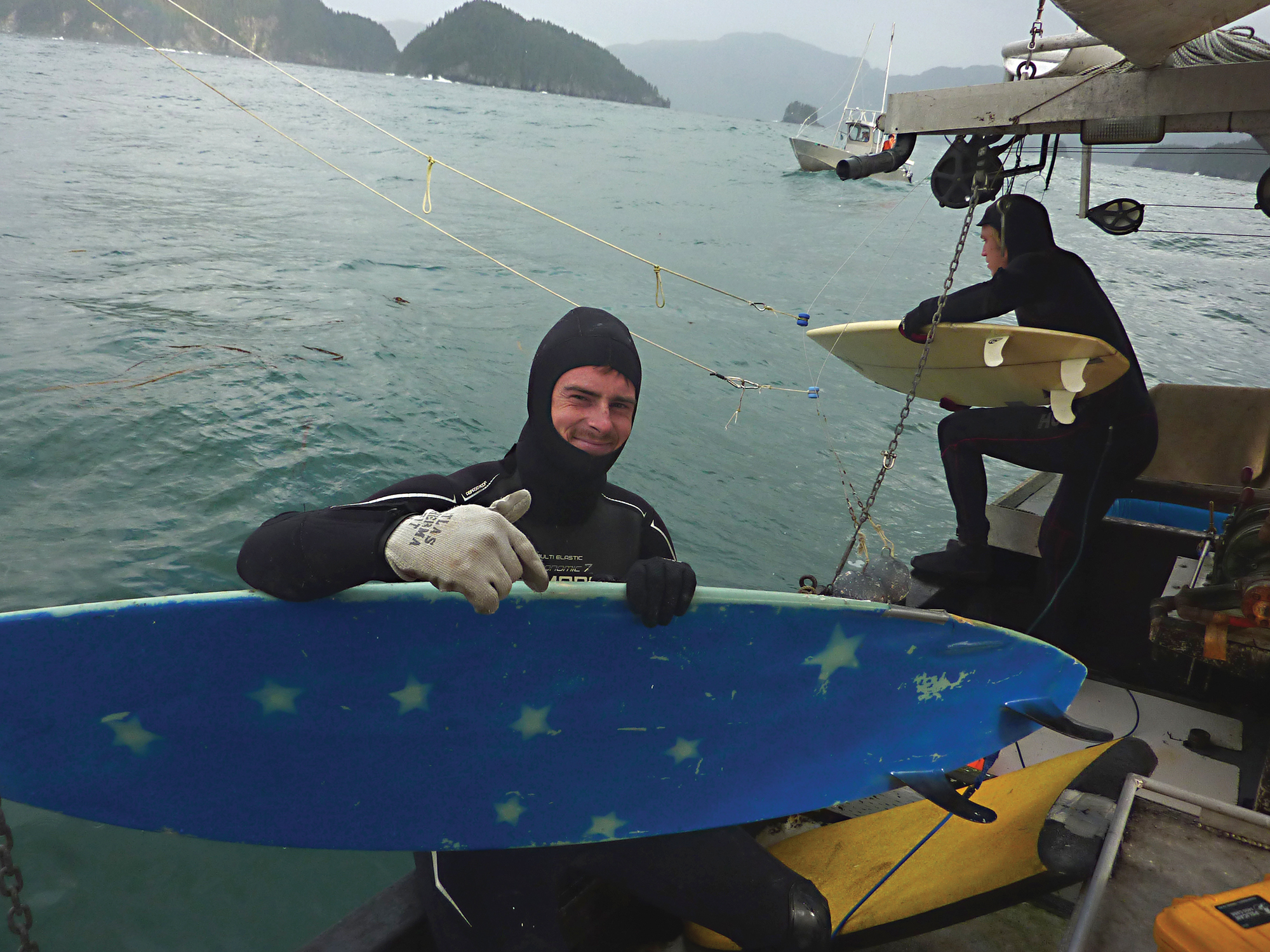 “He’s a 3rd generation fisherman. Super rad dude. And fuckin’ rips on a surfboard. Hollow barrels guy.” That’s what my brother Jake told me about his buddy, this dreadlocked fisherman in Juneau. Taiga, pronounced tahy-guh, like the forest. I heard he shaved his dreads once when he was like 14. They grew back and he’s had them ever since. Now he’s got a head of hair like a Komondor. When he’s out fishing, he usually just stuffs them into a hat or pulls his hood up to avoid getting nasty shit in his locks.